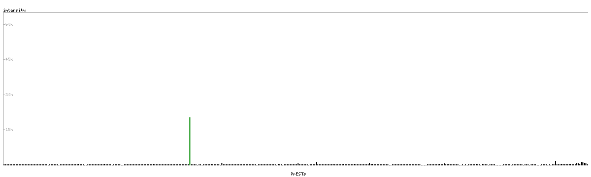 At the top of the view, the position of the antigen (identified by the corresponding HPA identifier) is shown as a green bar. A yellow triangle on the bar indicates a <100% sequence identity to the protein target.