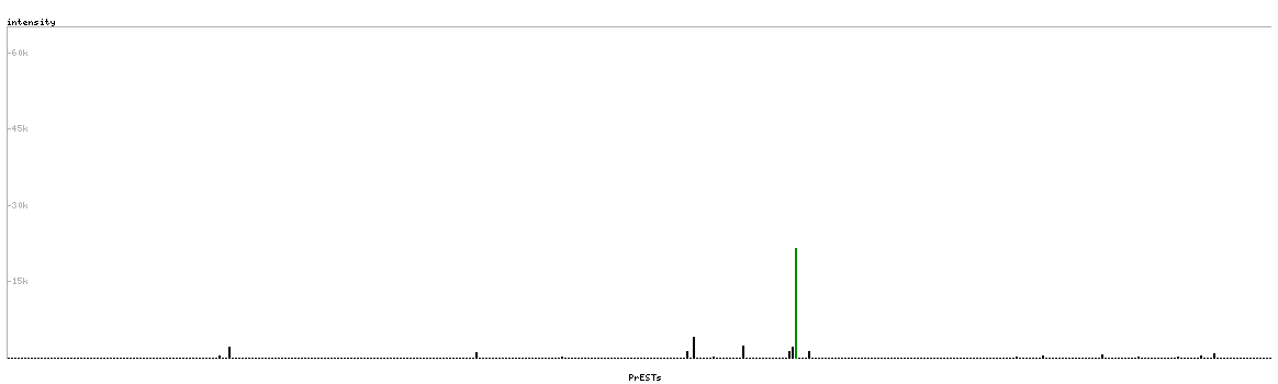 At the top of the view, the position of the antigen (identified by the corresponding HPA identifier) is shown as a green bar. A yellow triangle on the bar indicates a <100% sequence identity to the protein target.