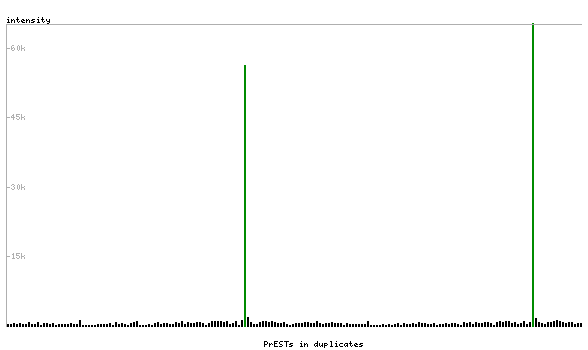 At the top of the view, the position of the antigen (identified by the corresponding HPA identifier) is shown as a green bar. A yellow triangle on the bar indicates a <100% sequence identity to the protein target.
