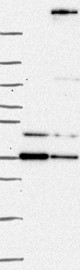A Western blot analysis is performed on a panel of human tissues and cell lines to evaluate antibody specificity. For antibodies with unreliable result a revalidation using an over-expression lysate is performed.