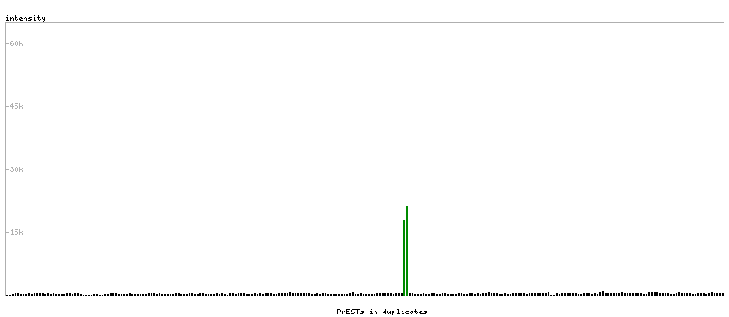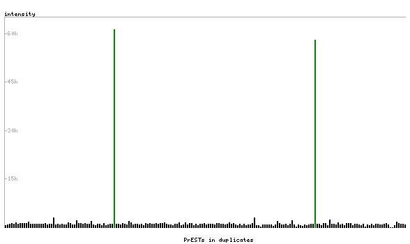 At the top of the view, the position of the antigen (identified by the corresponding HPA identifier) is shown as a green bar. A yellow triangle on the bar indicates a <100% sequence identity to the protein target.