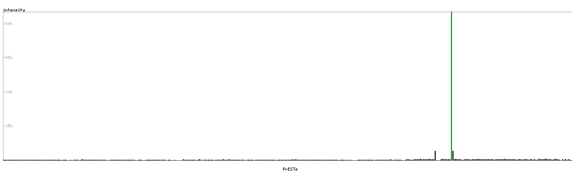 At the top of the view, the position of the antigen (identified by the corresponding HPA identifier) is shown as a green bar. A yellow triangle on the bar indicates a <100% sequence identity to the protein target.