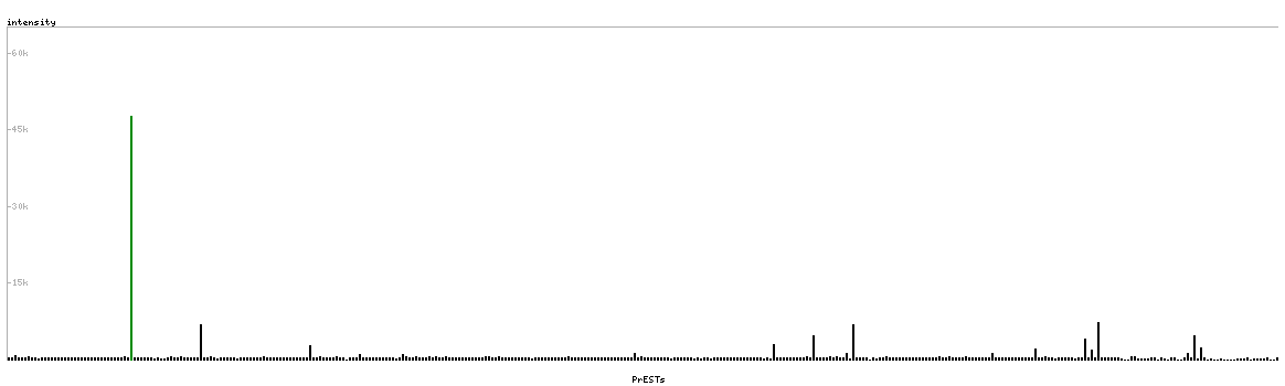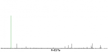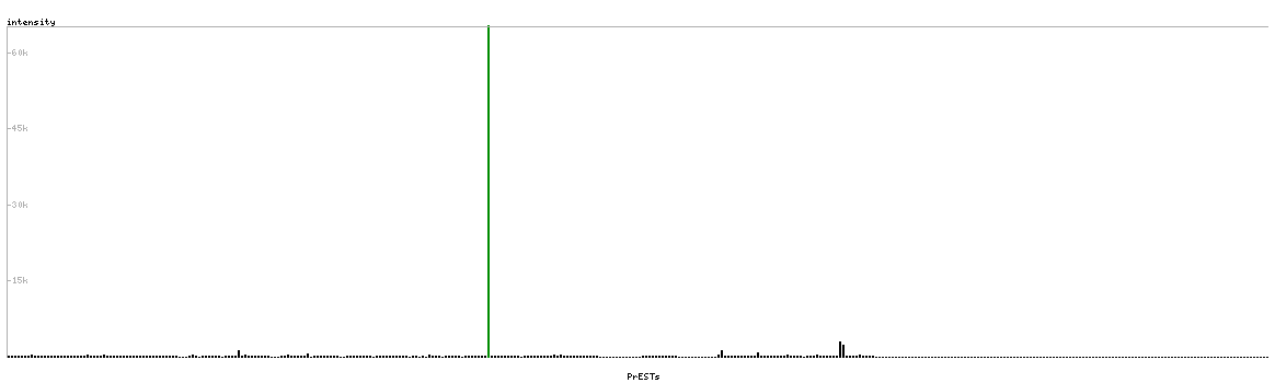 At the top of the view, the position of the antigen (identified by the corresponding HPA identifier) is shown as a green bar. A yellow triangle on the bar indicates a <100% sequence identity to the protein target.