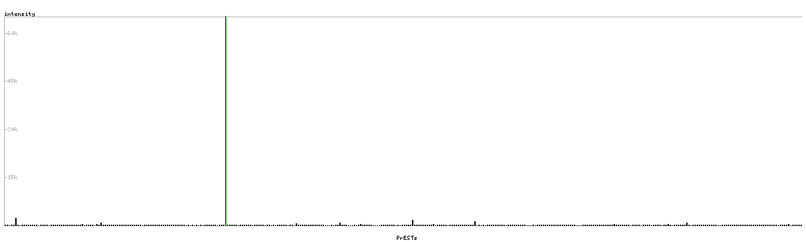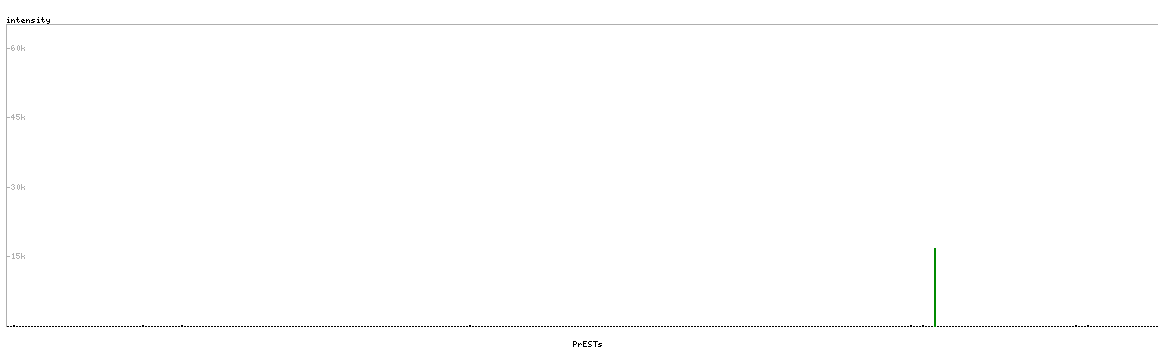 At the top of the view, the position of the antigen (identified by the corresponding HPA identifier) is shown as a green bar. A yellow triangle on the bar indicates a <100% sequence identity to the protein target.