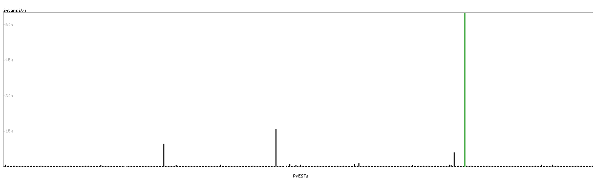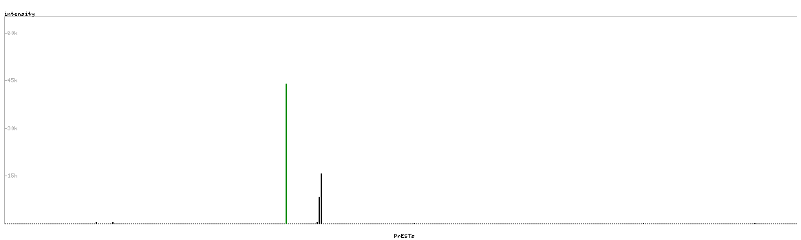 At the top of the view, the position of the antigen (identified by the corresponding HPA identifier) is shown as a green bar. A yellow triangle on the bar indicates a <100% sequence identity to the protein target.