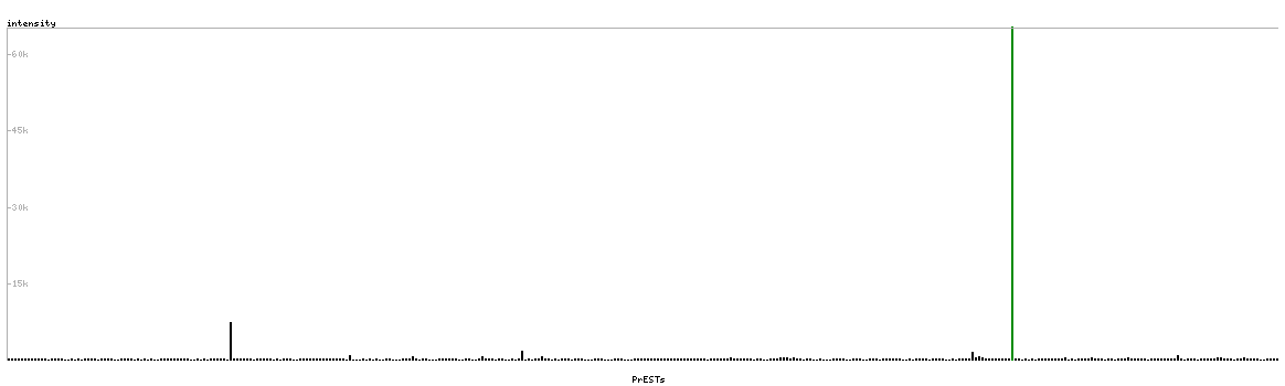 At the top of the view, the position of the antigen (identified by the corresponding HPA identifier) is shown as a green bar. A yellow triangle on the bar indicates a <100% sequence identity to the protein target.