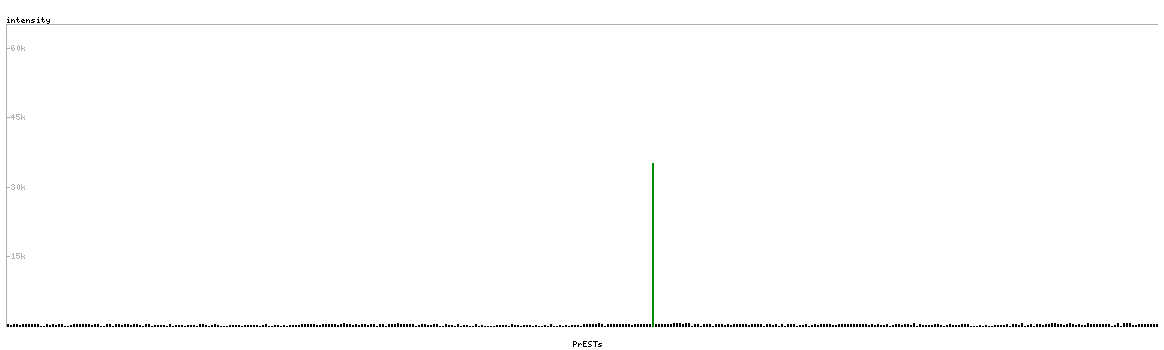 At the top of the view, the position of the antigen (identified by the corresponding HPA identifier) is shown as a green bar. A yellow triangle on the bar indicates a <100% sequence identity to the protein target.