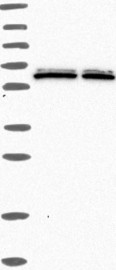 Antibody band pattern is confirmed by antibody HPA042843. Analysis performed using a standard panel of samples.