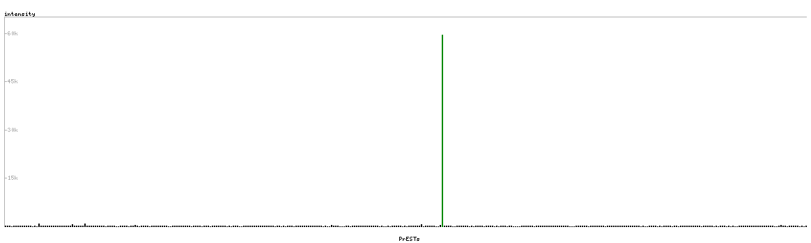 At the top of the view, the position of the antigen (identified by the corresponding HPA identifier) is shown as a green bar. A yellow triangle on the bar indicates a <100% sequence identity to the protein target.