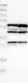 A Western blot analysis is performed on a panel of human tissues and cell lines to evaluate antibody specificity. For antibodies with unreliable result a revalidation using an over-expression lysate is performed.