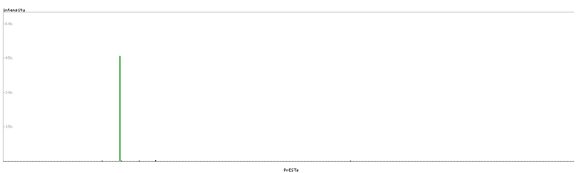 At the top of the view, the position of the antigen (identified by the corresponding HPA identifier) is shown as a green bar. A yellow triangle on the bar indicates a <100% sequence identity to the protein target.