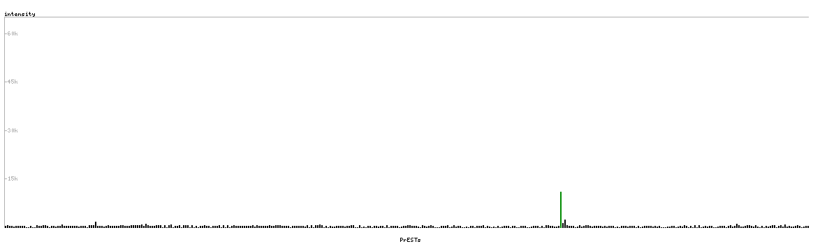 At the top of the view, the position of the antigen (identified by the corresponding HPA identifier) is shown as a green bar. A yellow triangle on the bar indicates a <100% sequence identity to the protein target.