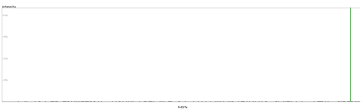 At the top of the view, the position of the antigen (identified by the corresponding HPA identifier) is shown as a green bar. A yellow triangle on the bar indicates a <100% sequence identity to the protein target.