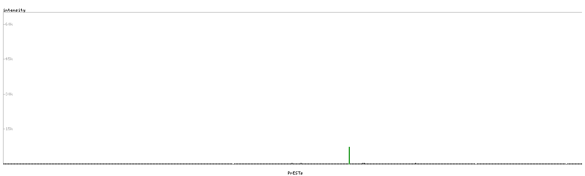 At the top of the view, the position of the antigen (identified by the corresponding HPA identifier) is shown as a green bar. A yellow triangle on the bar indicates a <100% sequence identity to the protein target.