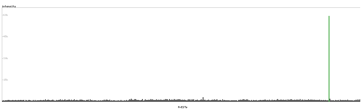 At the top of the view, the position of the antigen (identified by the corresponding HPA identifier) is shown as a green bar. A yellow triangle on the bar indicates a <100% sequence identity to the protein target.