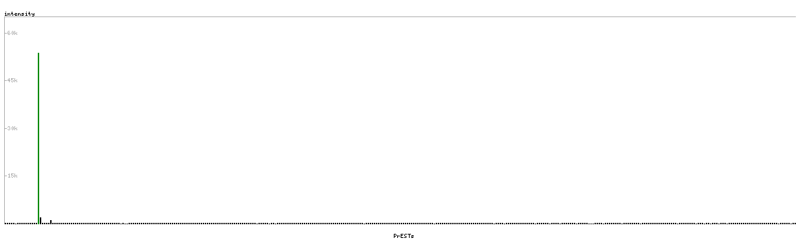 At the top of the view, the position of the antigen (identified by the corresponding HPA identifier) is shown as a green bar. A yellow triangle on the bar indicates a <100% sequence identity to the protein target.