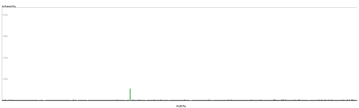 At the top of the view, the position of the antigen (identified by the corresponding HPA identifier) is shown as a green bar. A yellow triangle on the bar indicates a <100% sequence identity to the protein target.