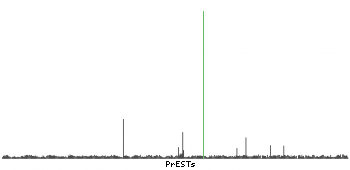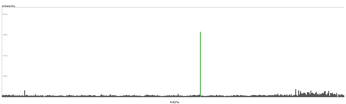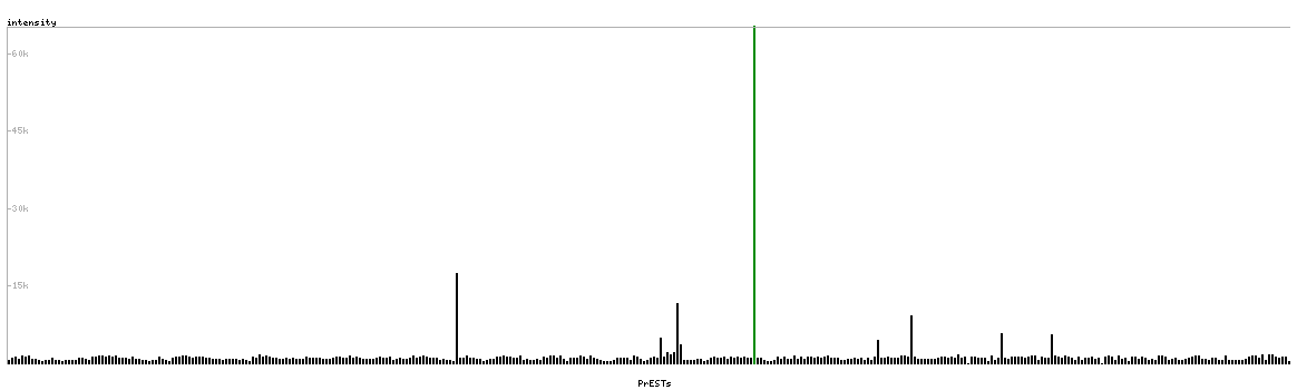 At the top of the view, the position of the antigen (identified by the corresponding HPA identifier) is shown as a green bar. A yellow triangle on the bar indicates a <100% sequence identity to the protein target.