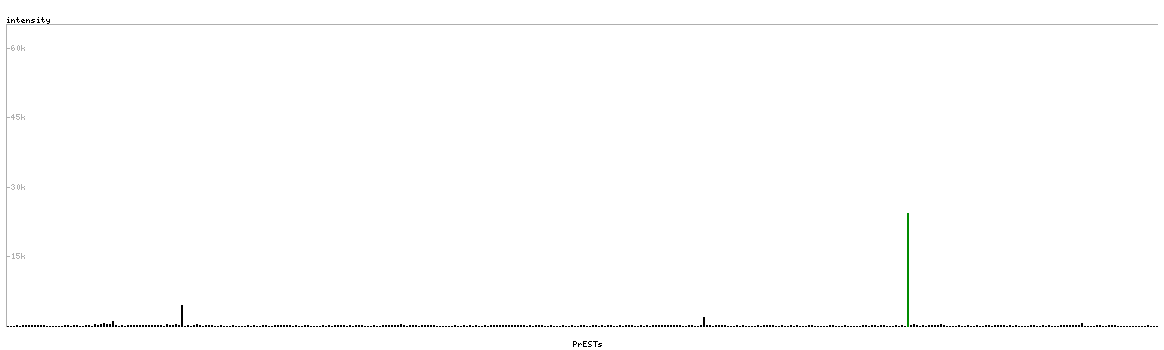At the top of the view, the position of the antigen (identified by the corresponding HPA identifier) is shown as a green bar. A yellow triangle on the bar indicates a <100% sequence identity to the protein target.