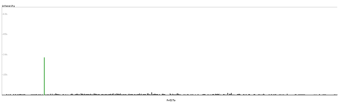 At the top of the view, the position of the antigen (identified by the corresponding HPA identifier) is shown as a green bar. A yellow triangle on the bar indicates a <100% sequence identity to the protein target.