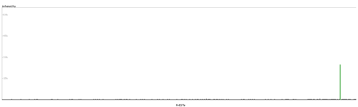 At the top of the view, the position of the antigen (identified by the corresponding HPA identifier) is shown as a green bar. A yellow triangle on the bar indicates a <100% sequence identity to the protein target.