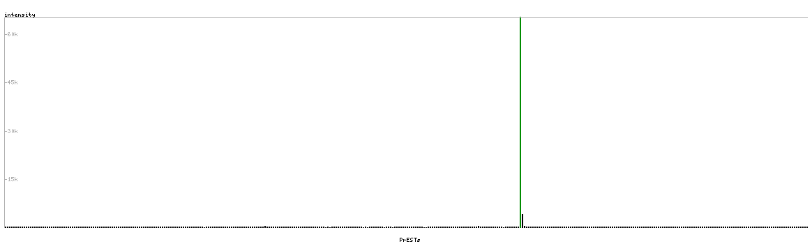 At the top of the view, the position of the antigen (identified by the corresponding HPA identifier) is shown as a green bar. A yellow triangle on the bar indicates a <100% sequence identity to the protein target.