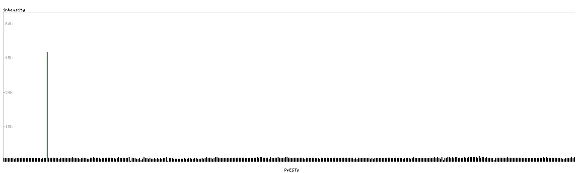 At the top of the view, the position of the antigen (identified by the corresponding HPA identifier) is shown as a green bar. A yellow triangle on the bar indicates a <100% sequence identity to the protein target.