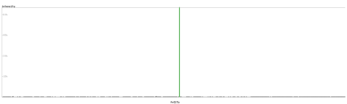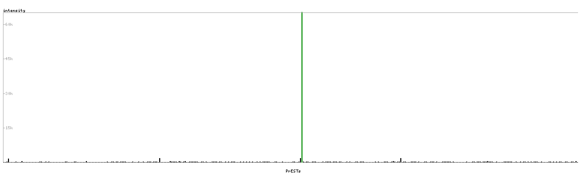 At the top of the view, the position of the antigen (identified by the corresponding HPA identifier) is shown as a green bar. A yellow triangle on the bar indicates a <100% sequence identity to the protein target.