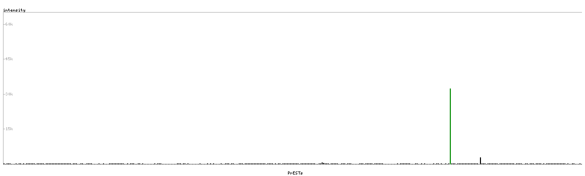 At the top of the view, the position of the antigen (identified by the corresponding HPA identifier) is shown as a green bar. A yellow triangle on the bar indicates a <100% sequence identity to the protein target.