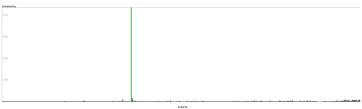 At the top of the view, the position of the antigen (identified by the corresponding HPA identifier) is shown as a green bar. A yellow triangle on the bar indicates a <100% sequence identity to the protein target.