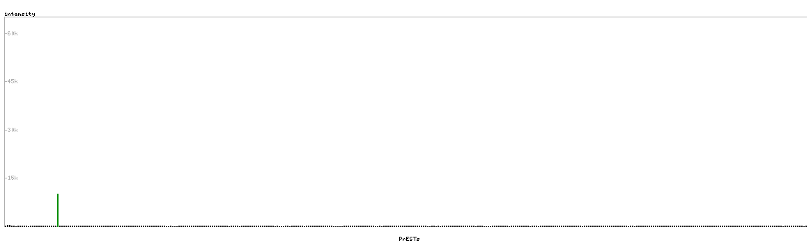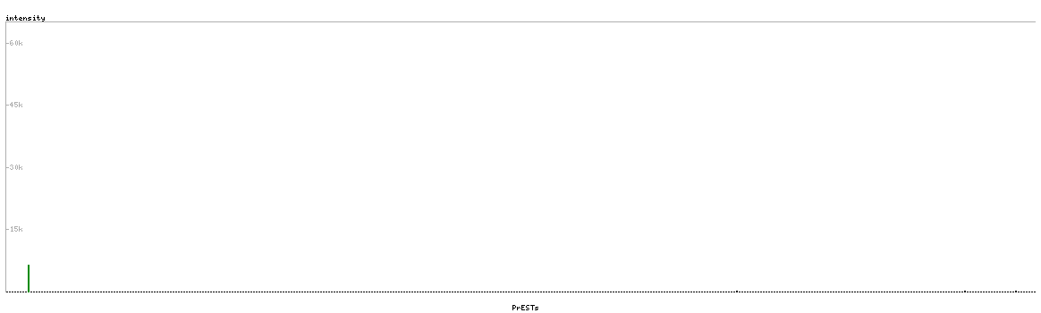 At the top of the view, the position of the antigen (identified by the corresponding HPA identifier) is shown as a green bar. A yellow triangle on the bar indicates a <100% sequence identity to the protein target.