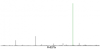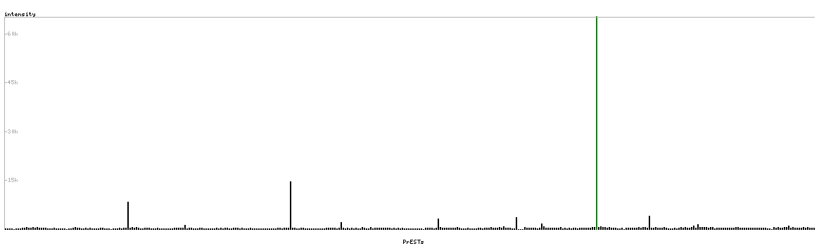At the top of the view, the position of the antigen (identified by the corresponding HPA identifier) is shown as a green bar. A yellow triangle on the bar indicates a <100% sequence identity to the protein target.