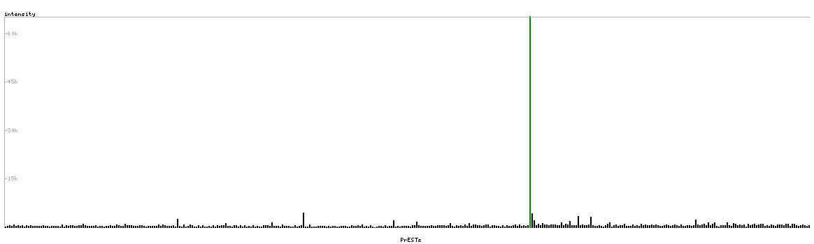 At the top of the view, the position of the antigen (identified by the corresponding HPA identifier) is shown as a green bar. A yellow triangle on the bar indicates a <100% sequence identity to the protein target.