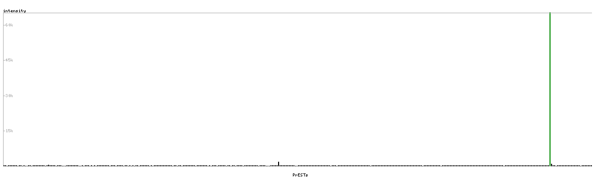At the top of the view, the position of the antigen (identified by the corresponding HPA identifier) is shown as a green bar. A yellow triangle on the bar indicates a <100% sequence identity to the protein target.