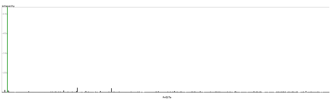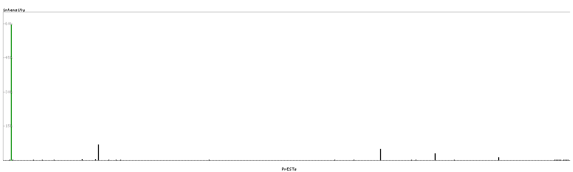At the top of the view, the position of the antigen (identified by the corresponding HPA identifier) is shown as a green bar. A yellow triangle on the bar indicates a <100% sequence identity to the protein target.