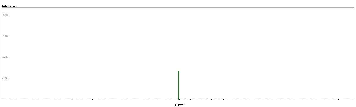 At the top of the view, the position of the antigen (identified by the corresponding HPA identifier) is shown as a green bar. A yellow triangle on the bar indicates a <100% sequence identity to the protein target.