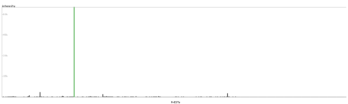 At the top of the view, the position of the antigen (identified by the corresponding HPA identifier) is shown as a green bar. A yellow triangle on the bar indicates a <100% sequence identity to the protein target.