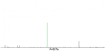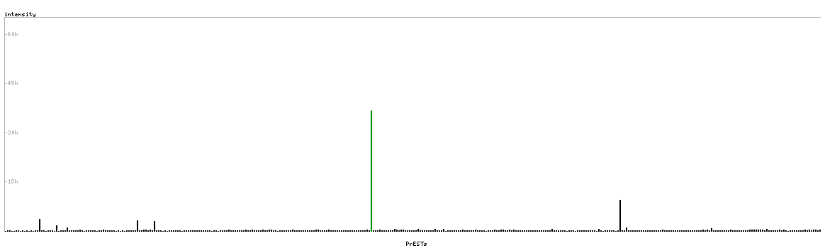 At the top of the view, the position of the antigen (identified by the corresponding HPA identifier) is shown as a green bar. A yellow triangle on the bar indicates a <100% sequence identity to the protein target.