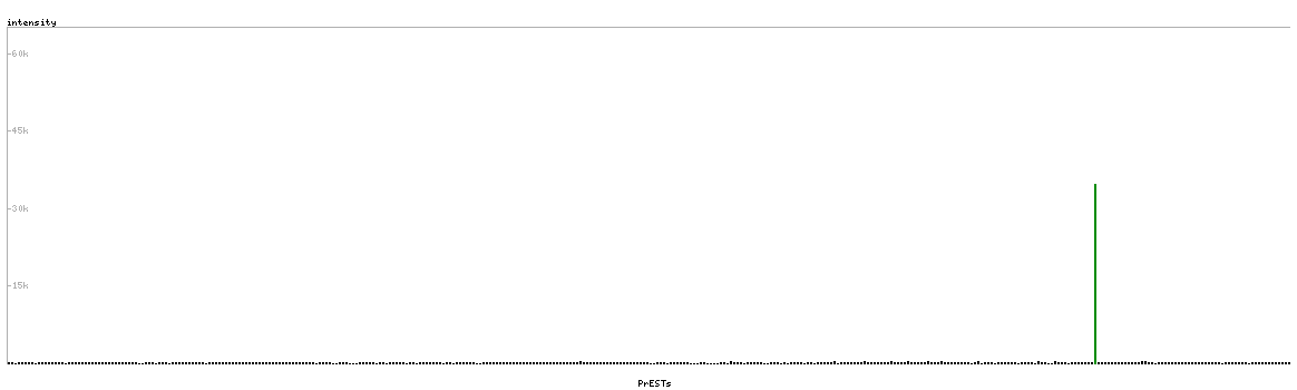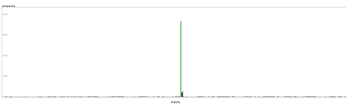 At the top of the view, the position of the antigen (identified by the corresponding HPA identifier) is shown as a green bar. A yellow triangle on the bar indicates a <100% sequence identity to the protein target.
