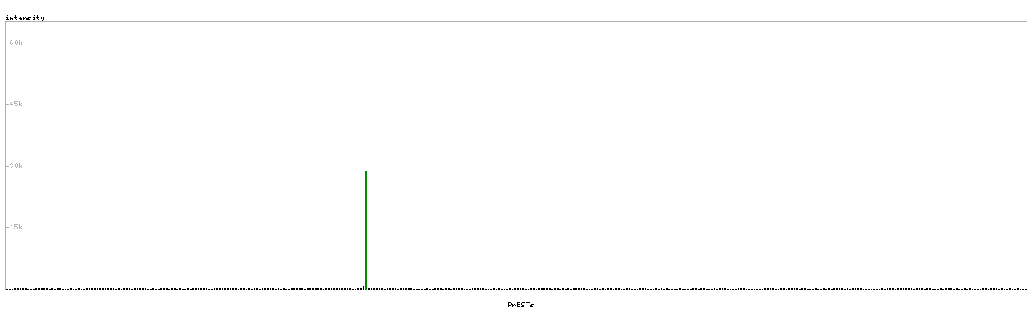 At the top of the view, the position of the antigen (identified by the corresponding HPA identifier) is shown as a green bar. A yellow triangle on the bar indicates a <100% sequence identity to the protein target.