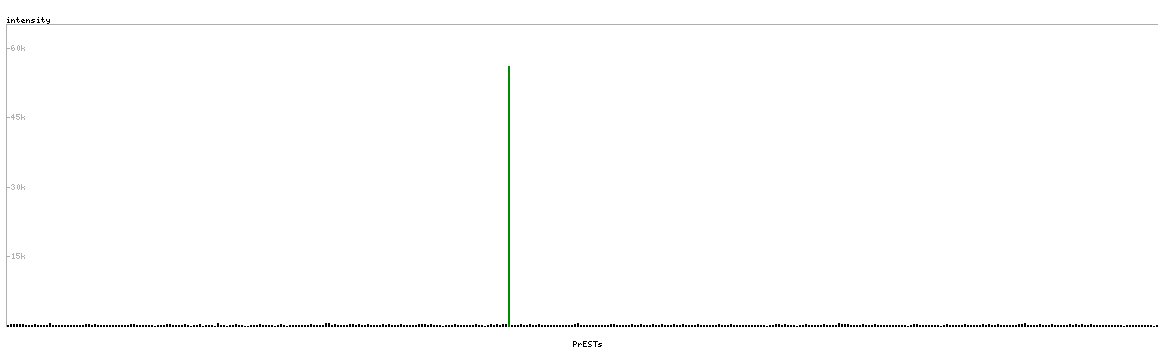 At the top of the view, the position of the antigen (identified by the corresponding HPA identifier) is shown as a green bar. A yellow triangle on the bar indicates a <100% sequence identity to the protein target.