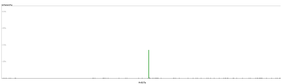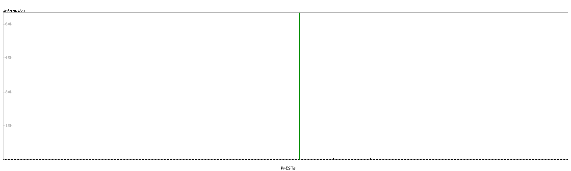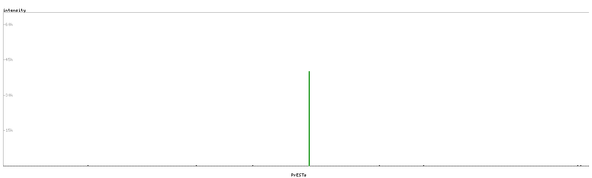 At the top of the view, the position of the antigen (identified by the corresponding HPA identifier) is shown as a green bar. A yellow triangle on the bar indicates a <100% sequence identity to the protein target.