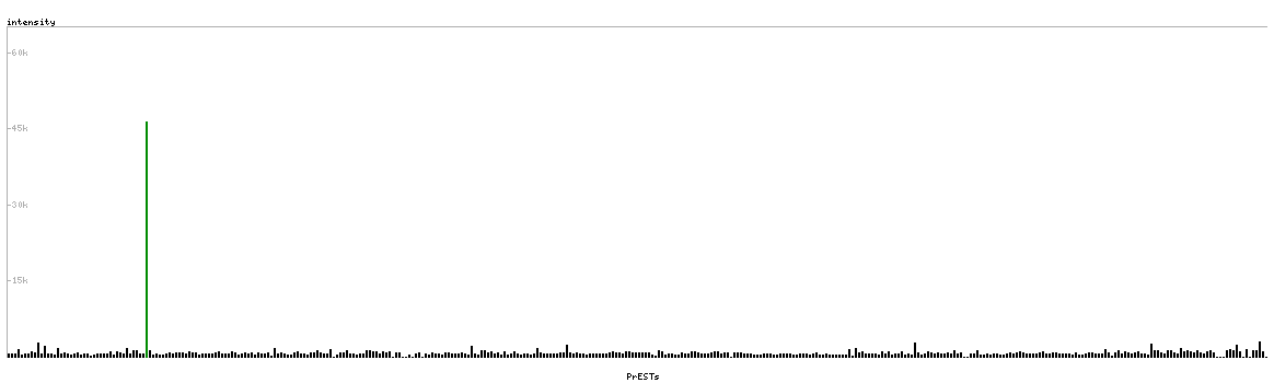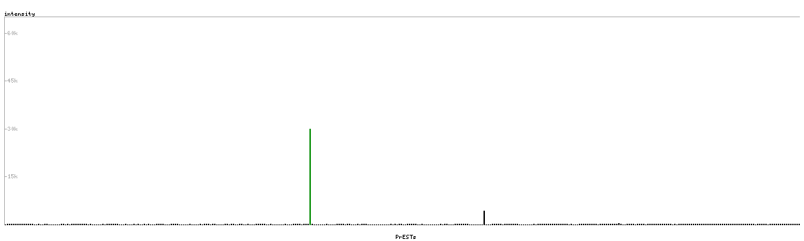 At the top of the view, the position of the antigen (identified by the corresponding HPA identifier) is shown as a green bar. A yellow triangle on the bar indicates a <100% sequence identity to the protein target.