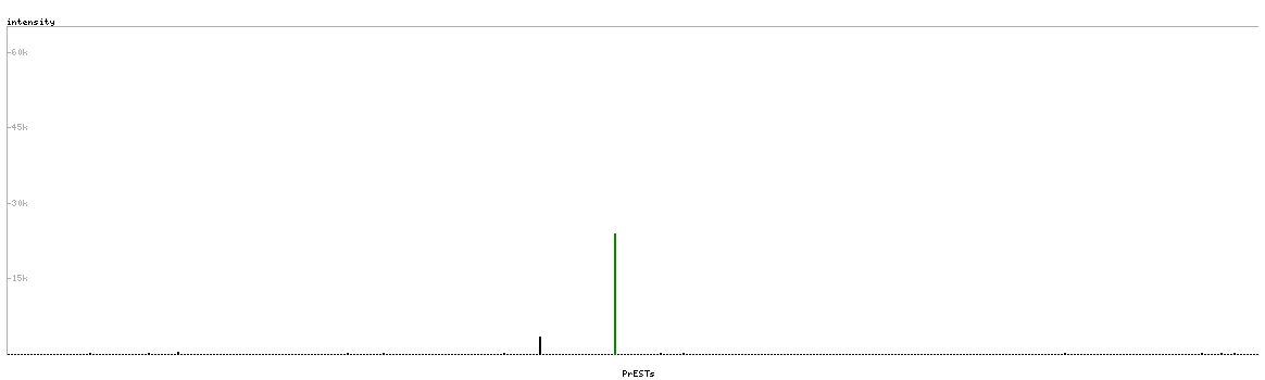At the top of the view, the position of the antigen (identified by the corresponding HPA identifier) is shown as a green bar. A yellow triangle on the bar indicates a <100% sequence identity to the protein target.