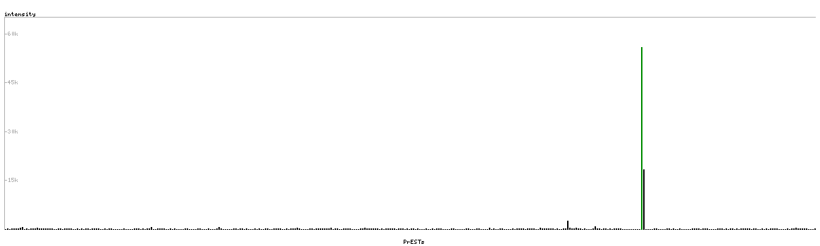 At the top of the view, the position of the antigen (identified by the corresponding HPA identifier) is shown as a green bar. A yellow triangle on the bar indicates a <100% sequence identity to the protein target.