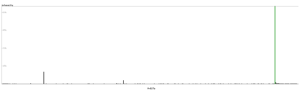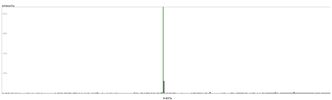 At the top of the view, the position of the antigen (identified by the corresponding HPA identifier) is shown as a green bar. A yellow triangle on the bar indicates a <100% sequence identity to the protein target.