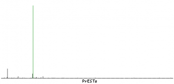 At the top of the view, the position of the antigen (identified by the corresponding HPA identifier) is shown as a green bar. A yellow triangle on the bar indicates a <100% sequence identity to the protein target.