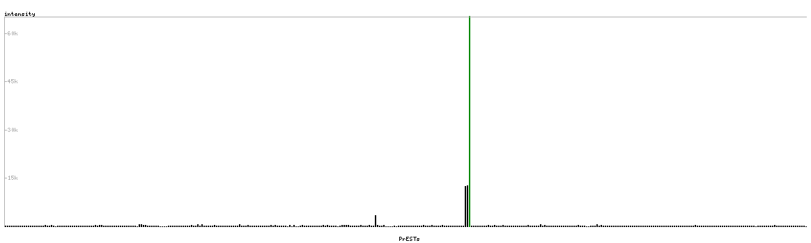 At the top of the view, the position of the antigen (identified by the corresponding HPA identifier) is shown as a green bar. A yellow triangle on the bar indicates a <100% sequence identity to the protein target.