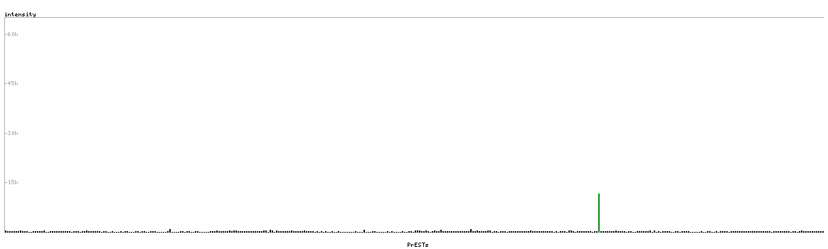 At the top of the view, the position of the antigen (identified by the corresponding HPA identifier) is shown as a green bar. A yellow triangle on the bar indicates a <100% sequence identity to the protein target.