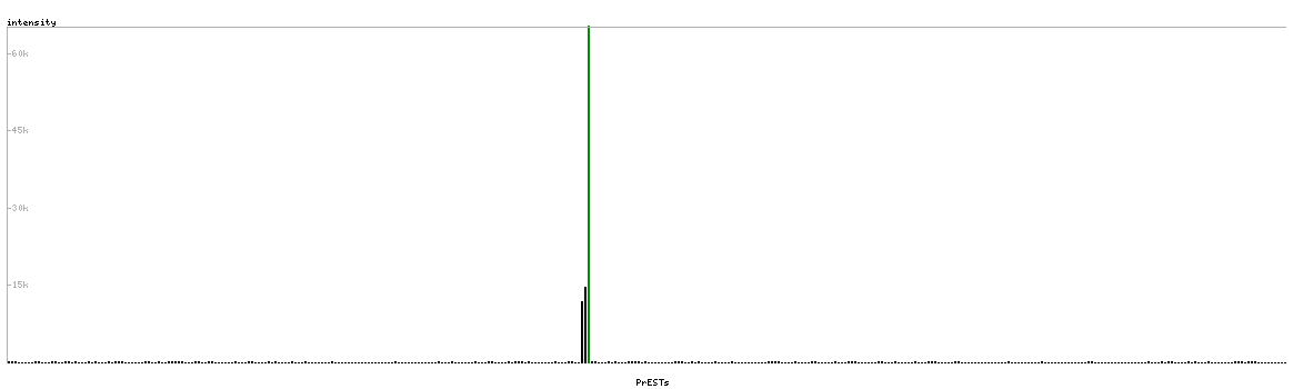 At the top of the view, the position of the antigen (identified by the corresponding HPA identifier) is shown as a green bar. A yellow triangle on the bar indicates a <100% sequence identity to the protein target.